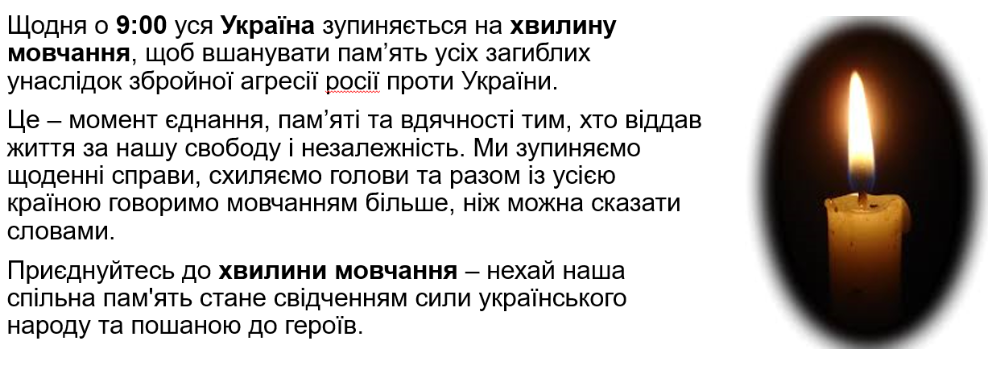 Долучаємося до загальнонаціональної хвилини мовчання