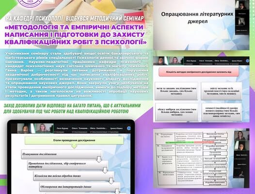Кафедрою психології МДПУ імені Богдана Хмельницького 11 листопада 2025 року було організовано та проведено методичний семінар «Методологія та емпіричні аспекти написання і підготовки до захисту кваліфікаційних робіт з психології».
