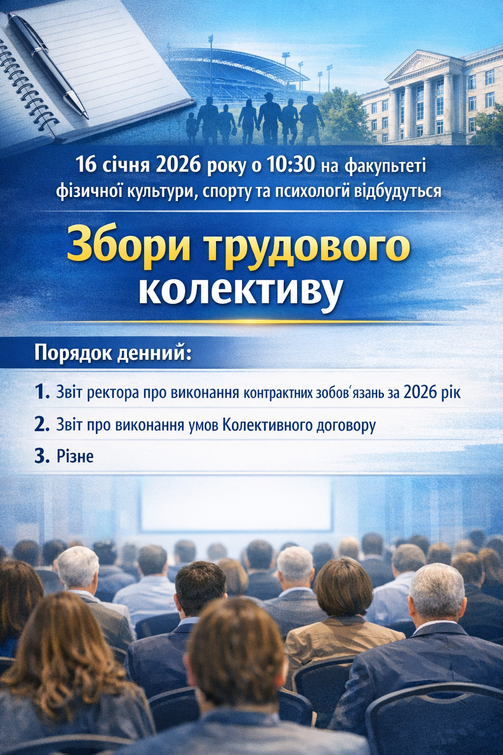 16 січня 2026 року о 10:30 на факультеті фізичної культури, спорту та психології відбудуться
