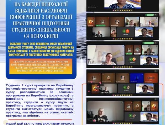 На кафедрі психології відбулися настановчі конференції з організації практичної підготовки студентів спеціальності С4 Психологія.