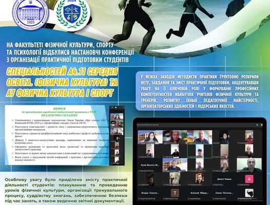 Особливу увагу було приділено змісту практичної діяльності студентів: плануванню та проведенню уроків фізичної культури, організації тренувального процесу, суддівству змагань, забезпеченню безпеки під час занять, а також веденню звітної документації. Здобувачі отримали чіткі методичні рекомендації щодо виконання індивідуальних завдань, аналізу власної діяльності та фіксації результатів професійної роботи, пройшли інструктаж з техніки безпеки. Окремо було висвітлено критерії оцінювання результатів практики, що забезпечують прозорість та об’єктивність контролю знань, умінь і навичок.